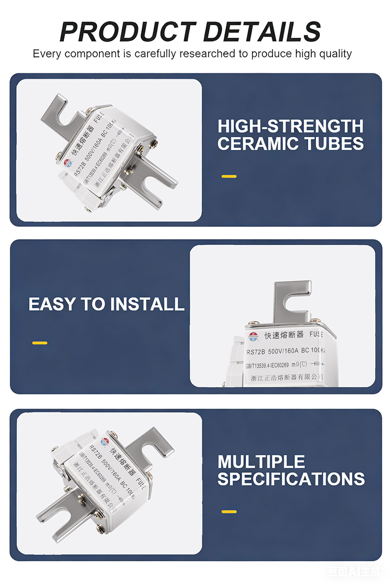 Η RS72B 500V 160A BC 100KA Fuse Links είναι μια βιομηχανική ασφάλεια υψηλής απόδοσης που έχει σχεδιαστεί ειδικά για προστασία υψηλής τάσης και υψηλού ρεύματος. Το RS72B 500V 160A BC 100KA Fuse Links είναι κατασκευασμένο από υψηλής ποιότητας υλικά και έχει εξαιρετική ικανότητα θραύσης. Μπορεί να αντέξει μέγιστο ρεύμα βραχυκυκλώματος 100KA, αποτρέποντας αποτελεσματικά τη ζημιά του εξοπλισμού.